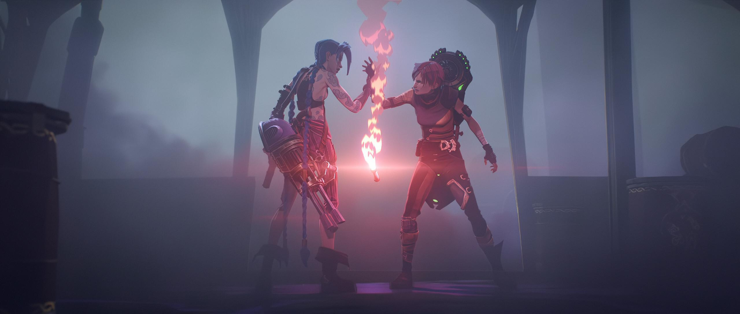 Mladé sestry Vi a Powder jsou viděny uprostřed následků ničivé bitvy, která se odehrála na Mostě pokroku spojujícím Piltover Crest ikonu Piltover a Zaun Crest ikonu Zaun. Mezi padlými leží mrtvoly jejich rodičů. Vander Vander, který vedl zaunské revolucionáře do bitvy, se nad oběma dětmi slituje a odnese je do bezpečí.