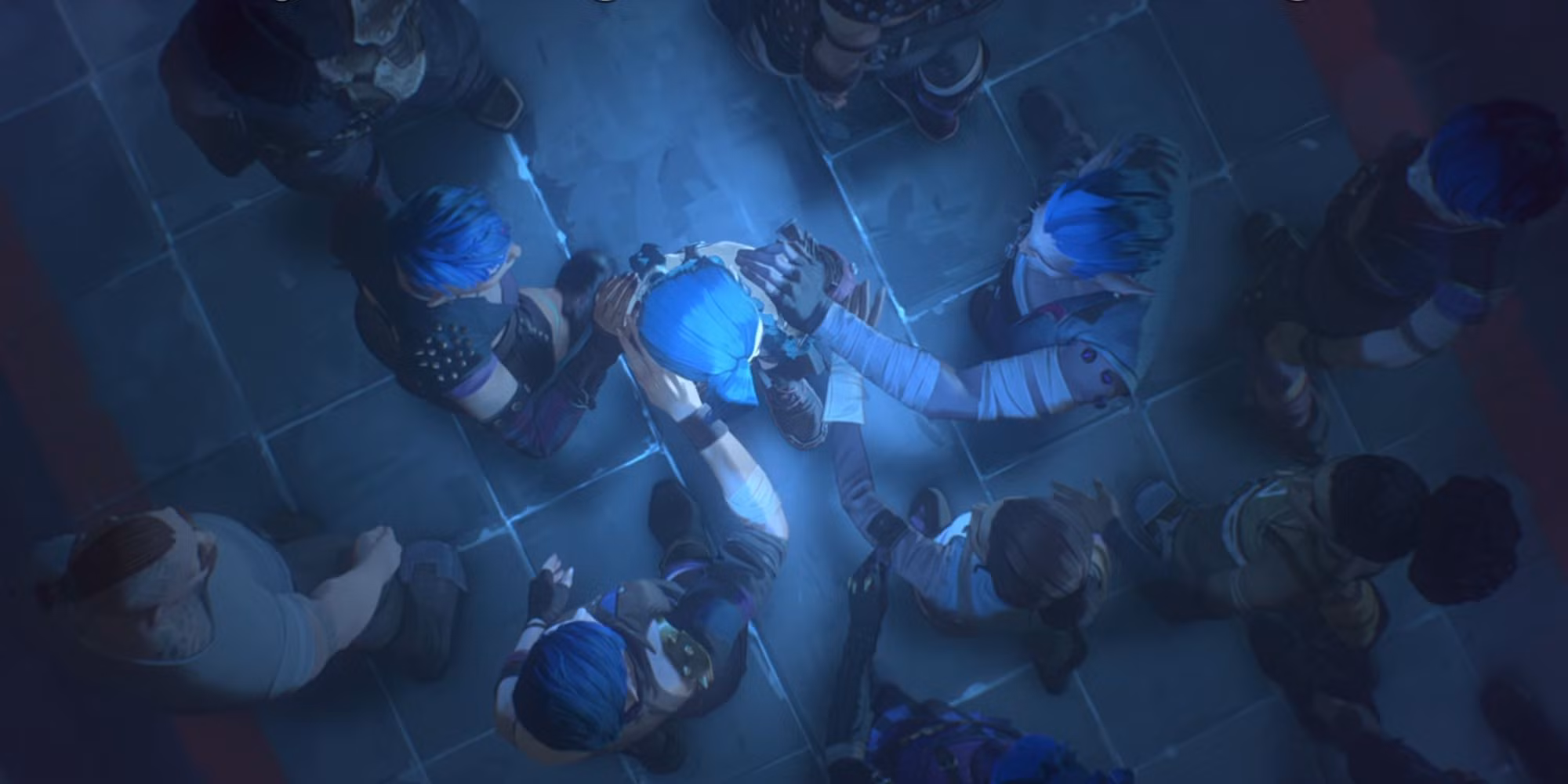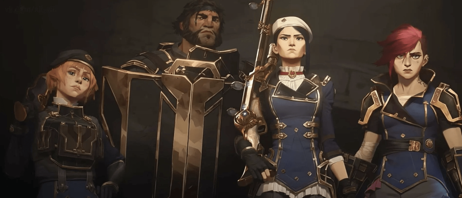 Mladé sestry Vi a Powder jsou viděny uprostřed následků ničivé bitvy, která se odehrála na Mostě pokroku spojujícím Piltover Crest ikonu Piltover a Zaun Crest ikonu Zaun. Mezi padlými leží mrtvoly jejich rodičů. Vander Vander, který vedl zaunské revolucionáře do bitvy, se nad oběma dětmi slituje a odnese je do bezpečí.