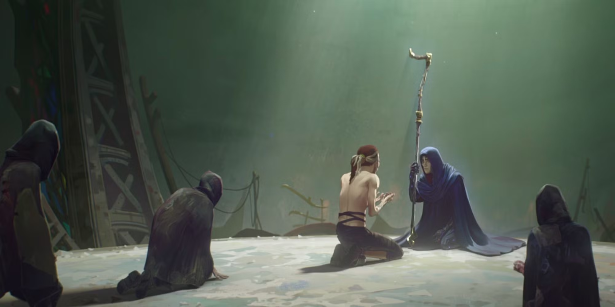 Vracíme se do scény z Jaycova dětství. On a jeho matka Ximena zůstali po kruté sněhové bouři sami v divočině. Ximena podlehne mrazu a zhroutí se do sněhu, což Jayce přiměje zoufale volat o pomoc. Přiblíží se k němu postava v kápi a začne spřádat fantastické tajemné kouzlo. Brzy vánice zmizí a květiny rozkvetou, jako by nikdy nesněžilo. Ximena začíná znovu nabírat sílu. Jayce je zmaten mágovou mocí, když mu postava v kápi zanechá nyní již vyčerpaný šestiboký krystal s nápisem magické runy.